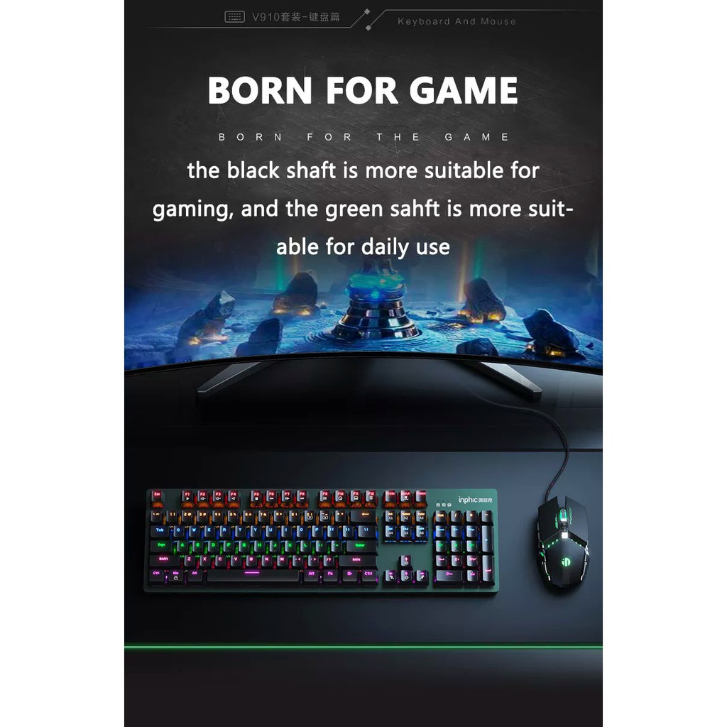 Máy tính & Laptop > Chuột & Bàn Phím > Bàn Phím Máy Tính || Bàn Phím Cơ INPHIC V910 Bàn Phím Chơi Game Có Dây Chuyên Nghiệp LED RGB Mix Backlit 104 PhímCòn hàng