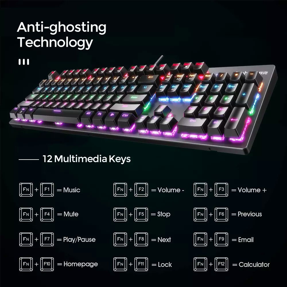 Bàn Phím Cơ INPHIC V910 Bàn Phím Chơi Game Có Dây Chuyên Nghiệp LED RGB Mix Backlit 104 Phím