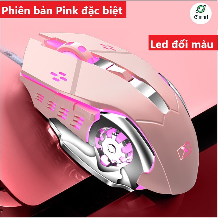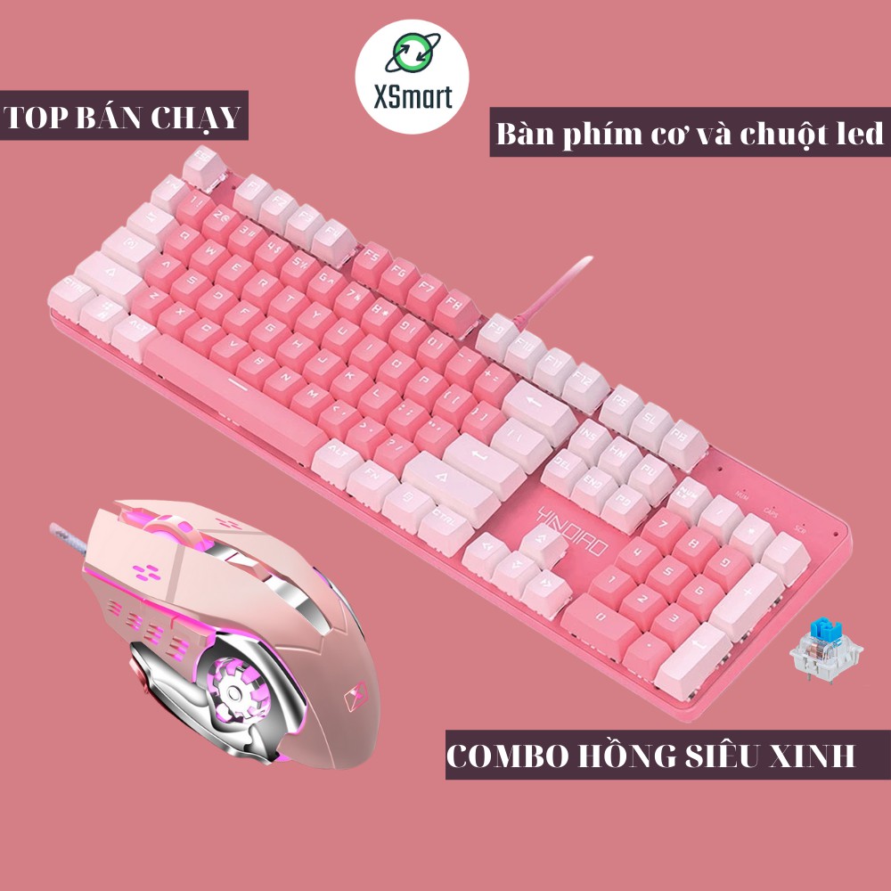 Bộ bàn phím CƠ kèm chuột màu Hồng cực Xinh chơi game làm văn phòng cực đã combo T900 trắng hồng +X500 có LED