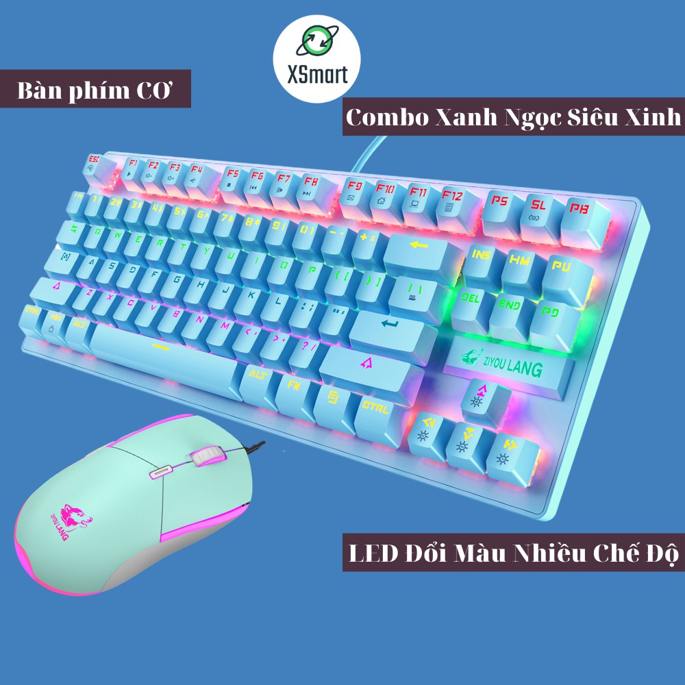 Bộ bàn phím CƠ kèm chuột màu Xanh Ngọc cực độc có LED RGB đổi màu nhiều chế độ cho máy tính laptop pc K2+V7 XANH
