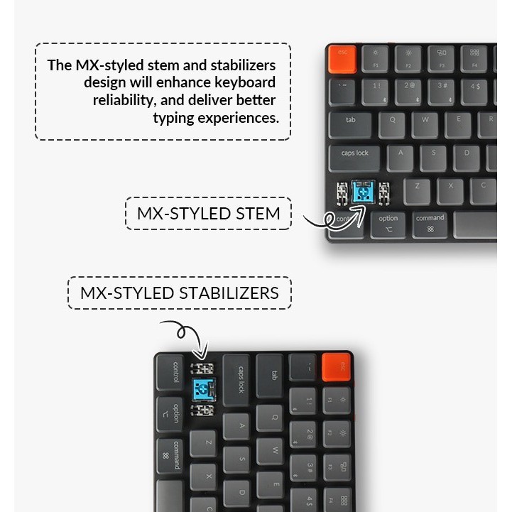 Thiết kế chân Keycap của K3 hoàn toàn giống với các chân Keycap bình thường khác trên thị trường. Bên cạnh đó Keychron cũng dành 1 năm để thiết kế nên hệ thống Stablilize ổn định.