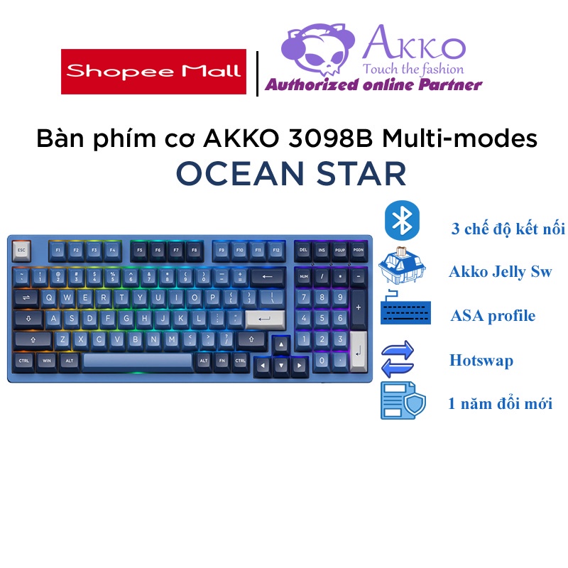 Máy tính & Laptop > Chuột & Bàn Phím > Bàn Phím Máy Tính || Bàn phím cơ không dây AKKO 3098B Multi-modes Ocean Star( Hotswap / Foam tiêu âm / Foam đáy / AKKO CS Jelly sw)Còn hàng