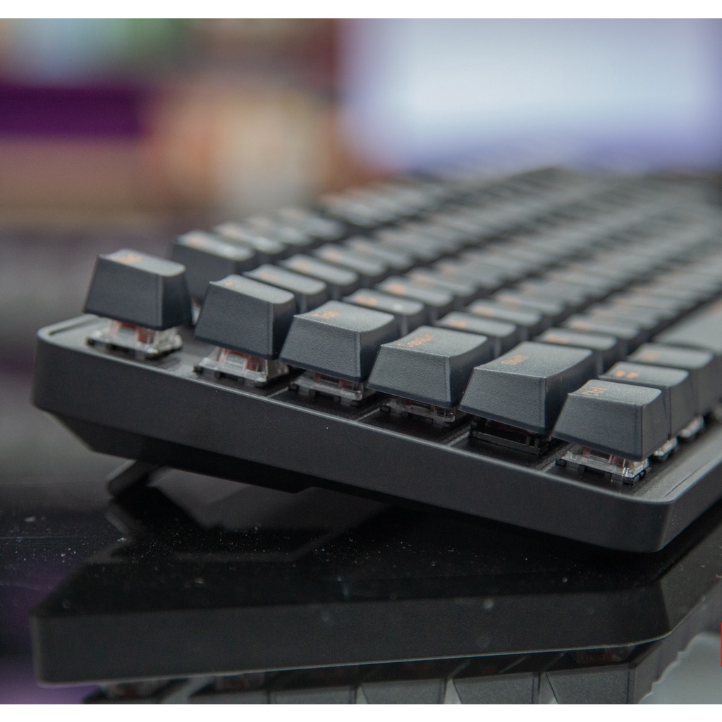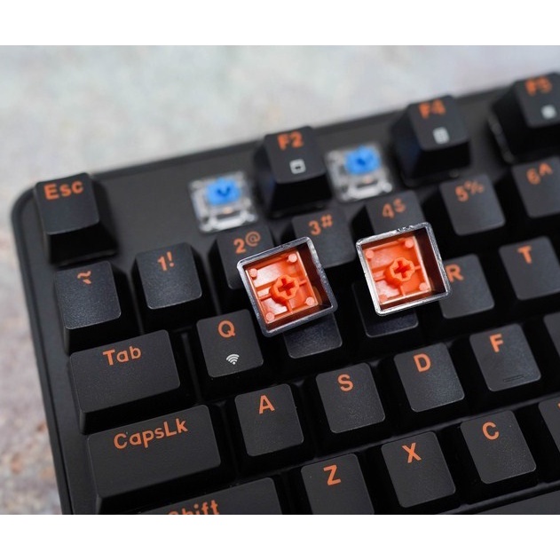 Để tăng độ bền cũng như cảm giác bấm tốt nhất có thển DareU EK807G được lắp bộ keycap ABS Double shot rất chất lượng, keycap rất dày và bền bỉ. Ký tự keycap màu Orange đúng màu truyền thống của DareU. Bàn phím không có LED, vì vậy mà bộ keycap này cũng không xuyên LED.