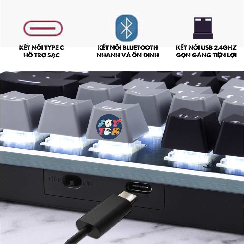 Bàn phím cơ không dây gaming blueototh RF912D, 3 mode kết nối, pin sạc lại dùng cho ipad, macbook, laptop, điện thoại PC