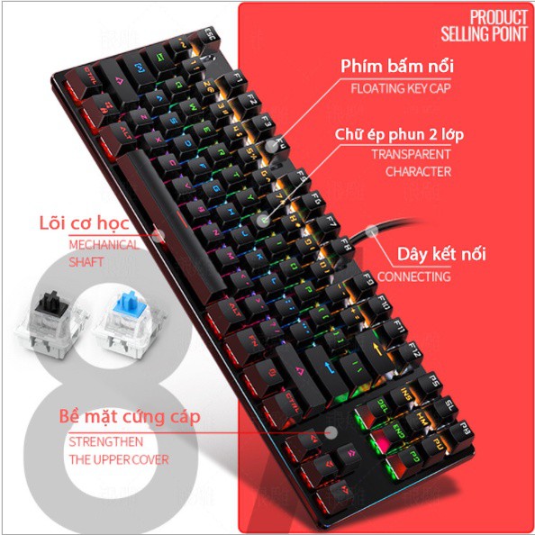 - Bố trí 87 phím, nắp phím nổi hình chữ U, gần ngón tay hoàn hảo, cảm giác mượt mà cho trải nghiệm văn phòng.