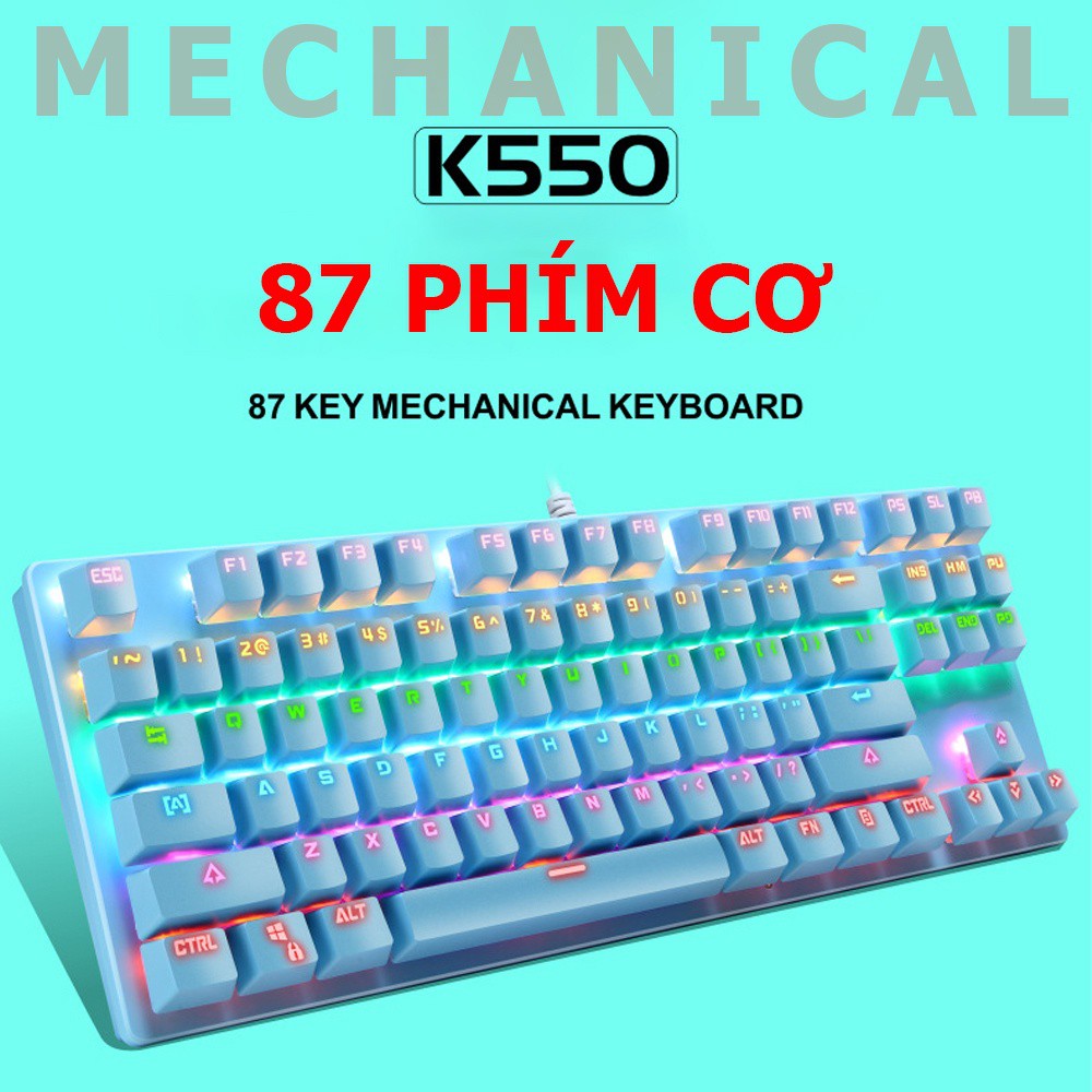 - Bàn phím cơ Latope gaming bàn phím máy tính chơi game TKL Full LED K550 RGB gồm 87 phím cơ, không lo xung đột phím, kẹt phím.