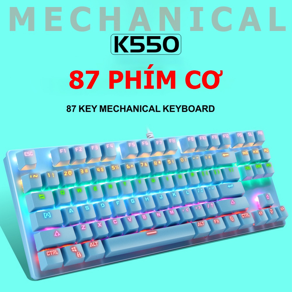 Bàn phím cơ máy tính gaming K550 Pro full Led 7 chế độ hiệu ứng là mẫu bàn phím phù hợp cho văn phòng và game thủBÀN PHÍM K550 được biết đến là dòng BÀN PHÍM CƠ blue switch có dây được ưu chuộng và bán chạy nhất trên thị trường, đây thực sự là dòng BÀN PHÍM CƠ tuyệt vời, với thiết kế cao cấp, hiệu ứng led 7 màu cực đẹp, độ nảy khi gõ phím luôn nhanh và chính xác, giúp những tắc vụ cơ bản, cũng như chơi game là tuyệt vời nhất