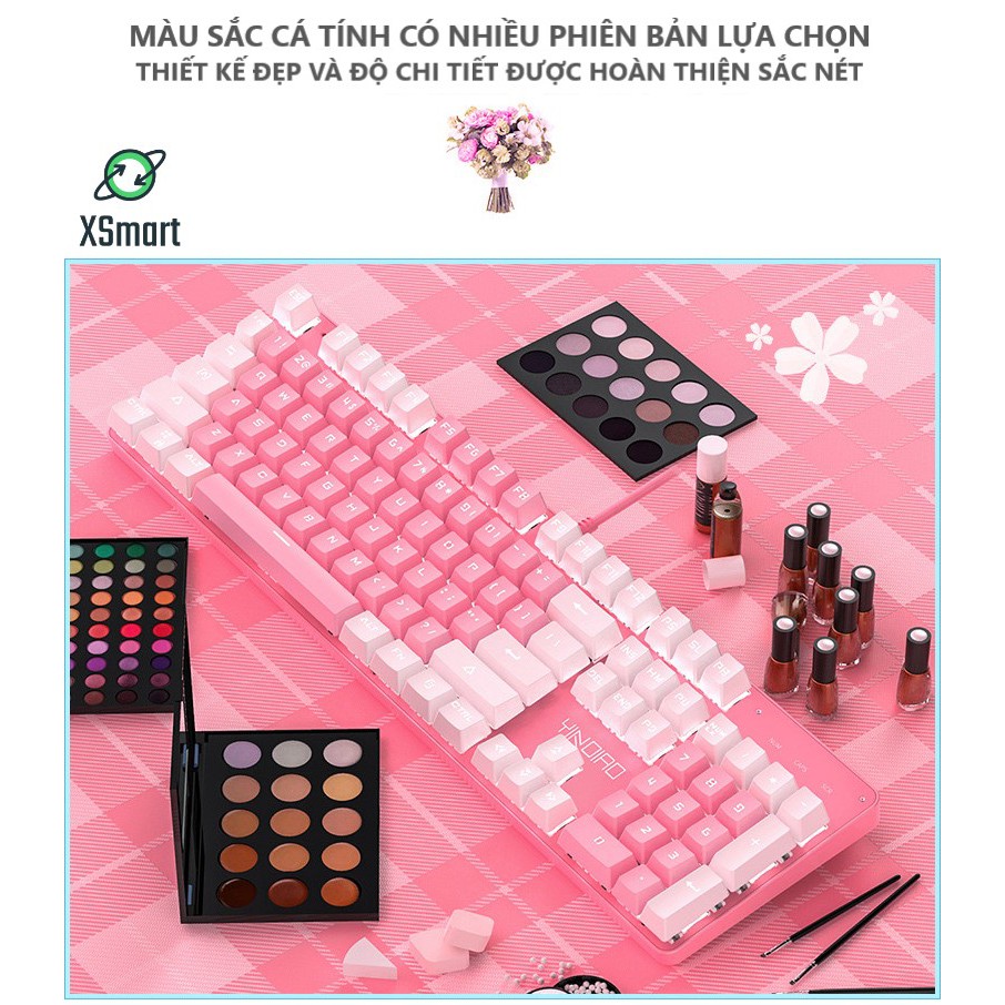 Bàn phím cơ máy tính HỒNG Cute T900 có 10 chế độ LED khác nhau, keybroad blue switch gõ cực đã cho cả pc, laptop