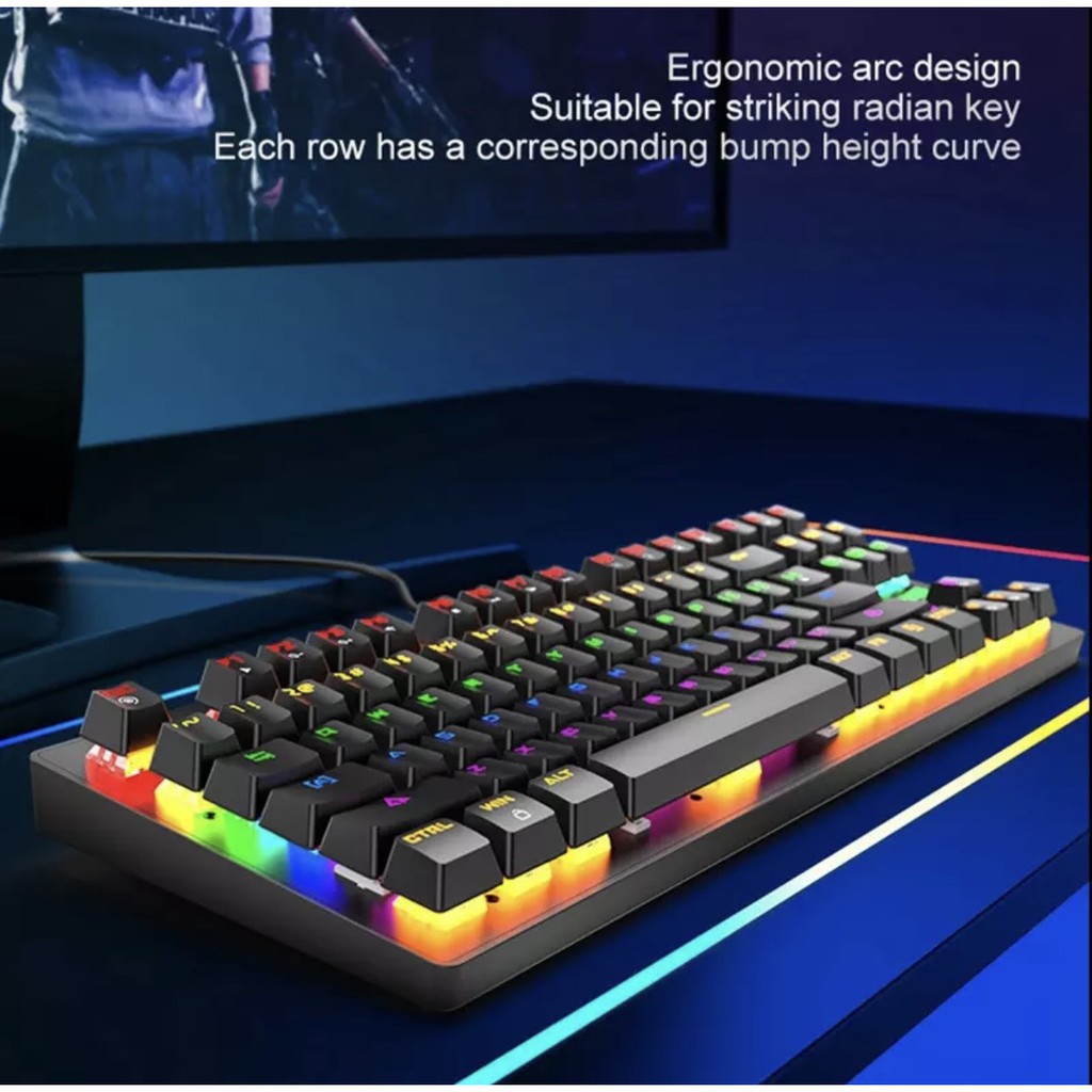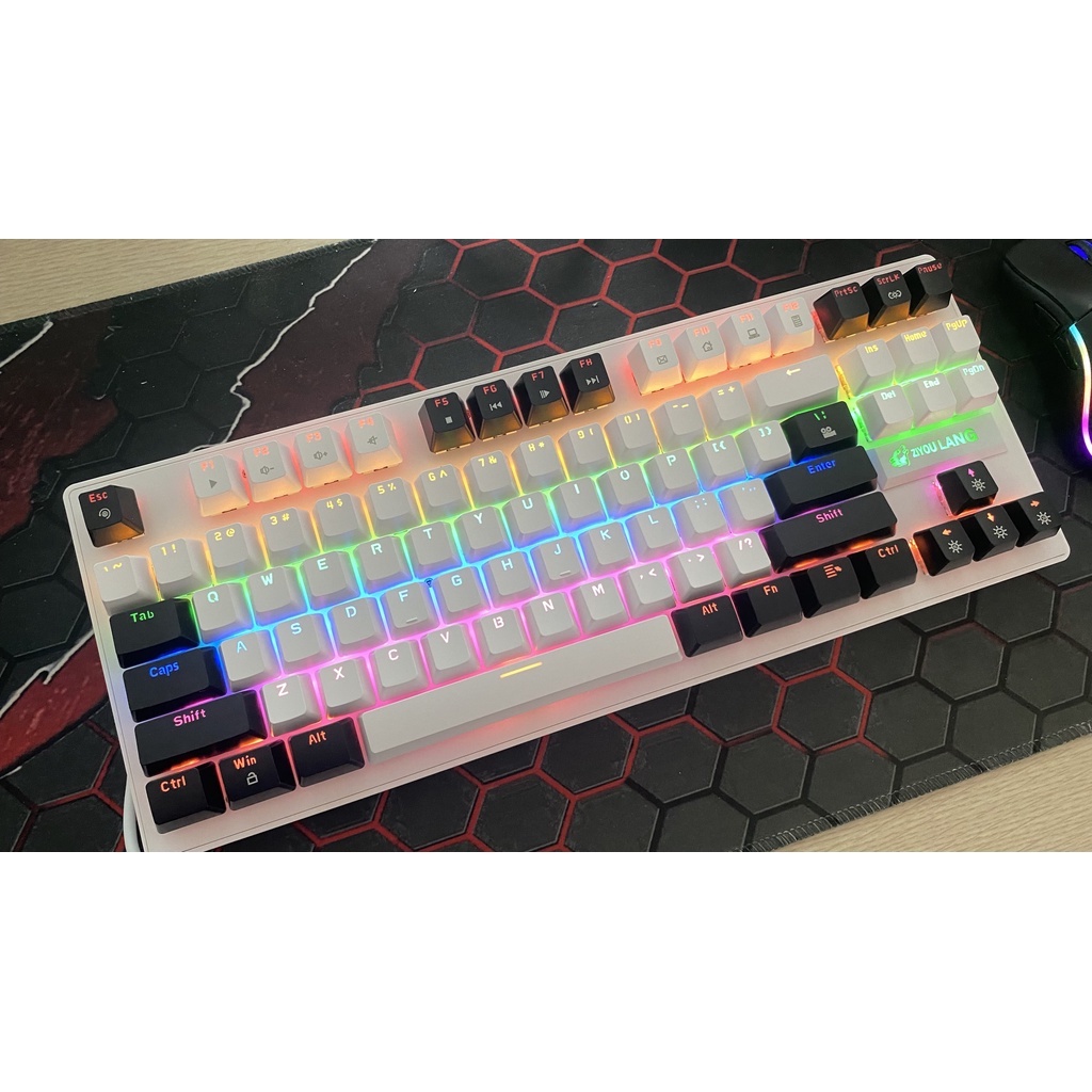 - Bố trí 87 phím, nắp phím nổi hình chữ U, gần ngón tay hoàn hảo, cảm giác mượt mà cho trải nghiệm văn phòng.