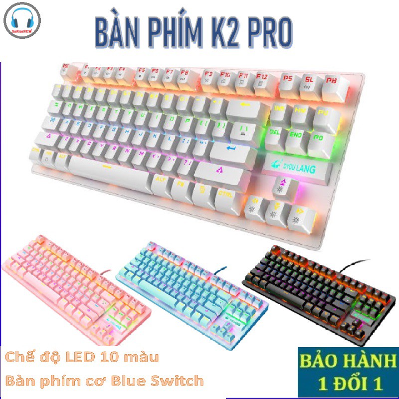 Máy tính & Laptop > Chuột & Bàn Phím > Bàn Phím Máy Tính || Bàn Phím Cơ Máy Tính K2 Pro Led RGB - Bàn Phím Cơ Blue Switch - Gõ êm Tay Có 10 Chế Độ Màu Cầu VồngCòn hàng