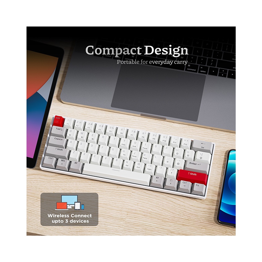 Loại sản phẩm : bàn phím cơ chế độ kép không dây bluetooth 5.0/3.0 và có dây USB-A To Type-CLayout: 61 phím