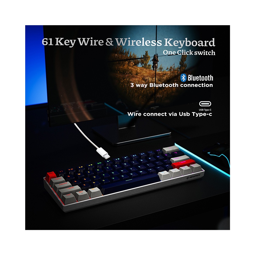 Máy tính & Laptop > Chuột & Bàn Phím > Bàn Phím Máy Tính || Bàn Phím Cơ Máy Tính Không Dây - Newmen GM610 Dual Mode (Bluetooth 5.0 | TypeC | LED RGB) - Hàng Chính HãngCòn hàng