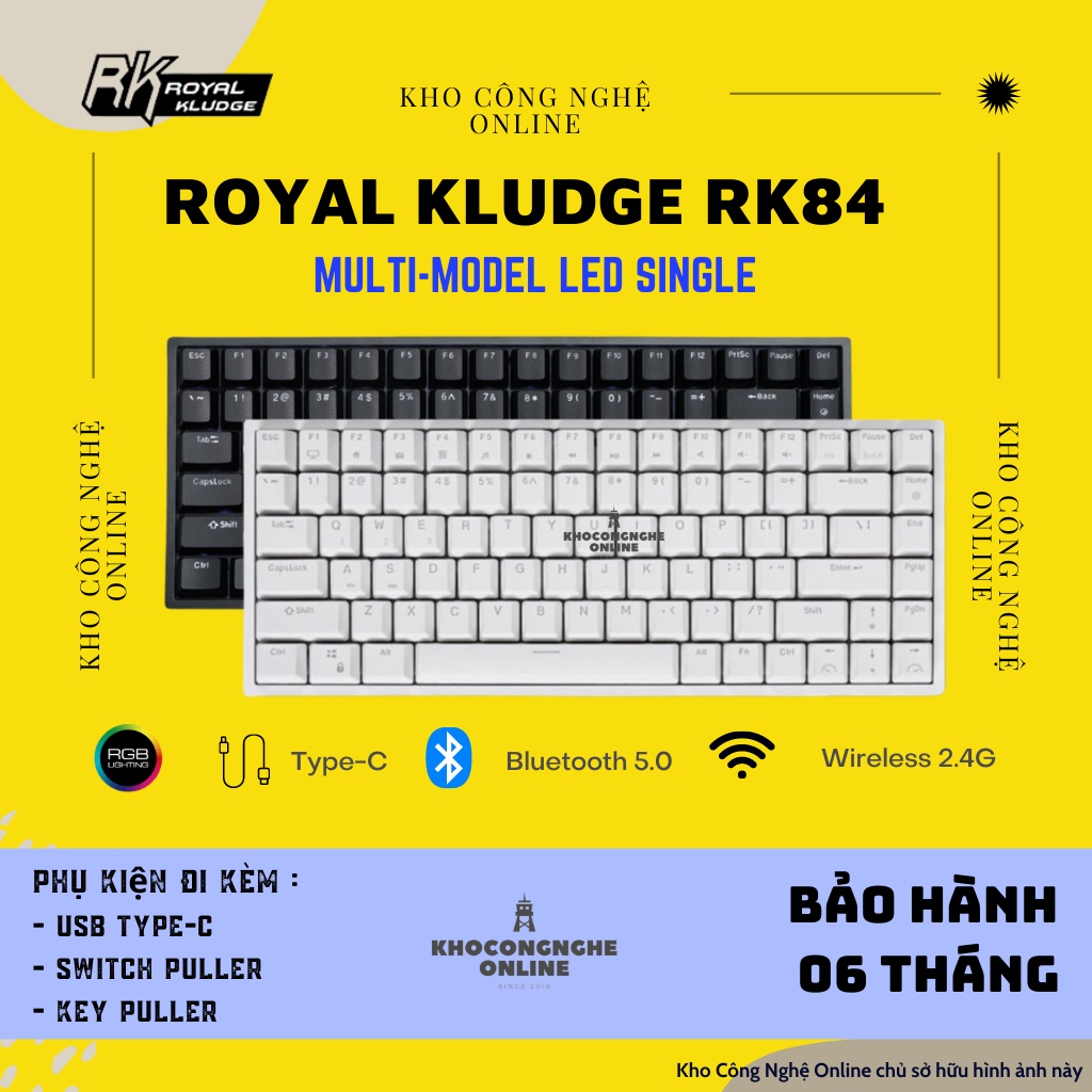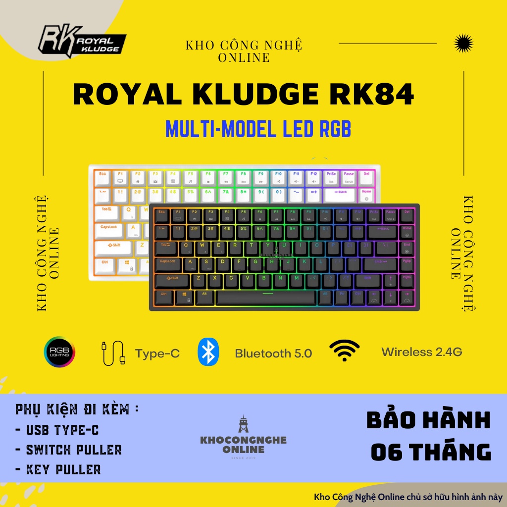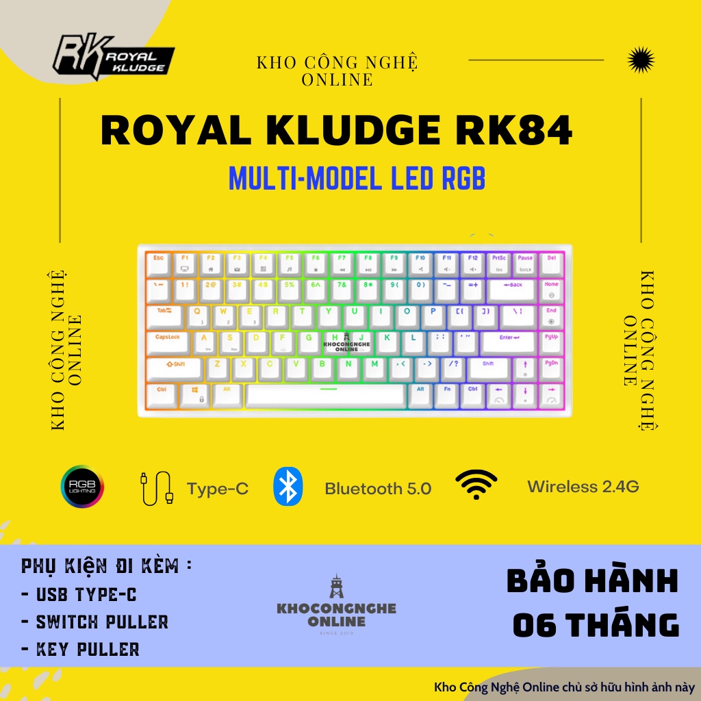 Máy tính & Laptop > Chuột & Bàn Phím > Bàn Phím Máy Tính || Bàn phím cơ máy tính Royal Kludge RK84 Hotswap kết nối 3 chế độ (Bluetooth 5.0 | Wireless 2.4G | Dây type C)Còn hàng