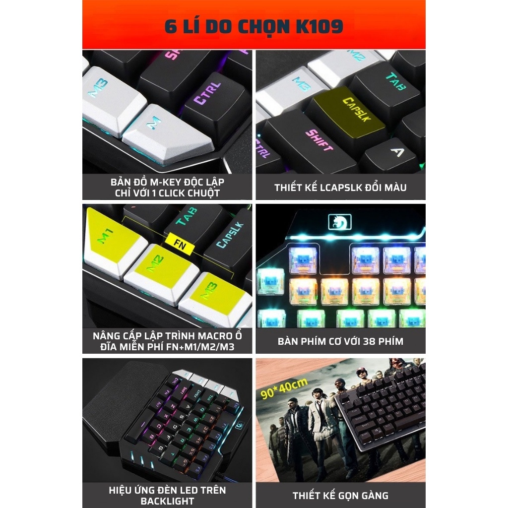 Bàn Phím Cơ Một Tay 38 Phím | New League K109 Chơi Liên Quân, PUBG, Free Fire