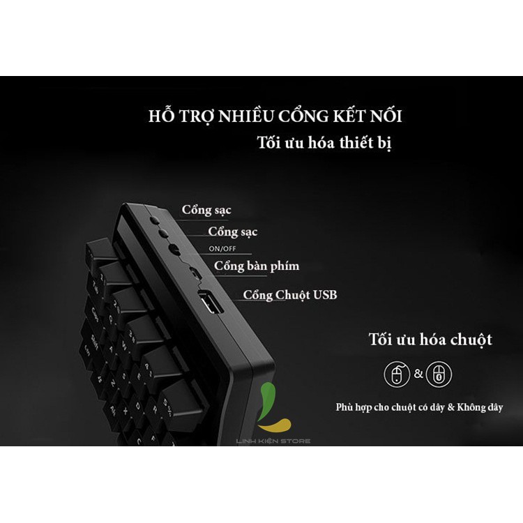 - Bộ chuyển đổi chuột và bàn phím tích hợp, kết nối với điện thoại qua bluetooth, tránh việc bị rối dây tạo nên môi trường gọn gàng, thoải mái khi chơi game.