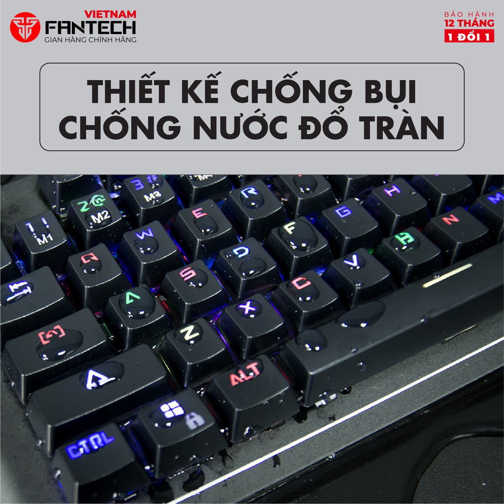 FANTECH MK885 tích HỢP, đèn nền RGB cho mỗi phím với hàng triệu màu sắc và các hiệu ứng khác nhau có sẵn, hoặc có thể điều chỉnh được cấu hình LED đầy đủ bằng Phần mềm chơi game của Fantech
