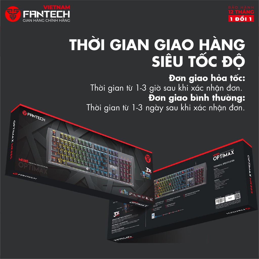 Bàn phím Cơ quang học FANTECH MK885 Backlit Ghost Blue Switch - Hãng phân phối chính thức Bảo hành 12 tháng 1 đổi 1 trong 15 ngàyTHỜI GIAN GIAO HÀNG SIÊU TỐC ĐỘ