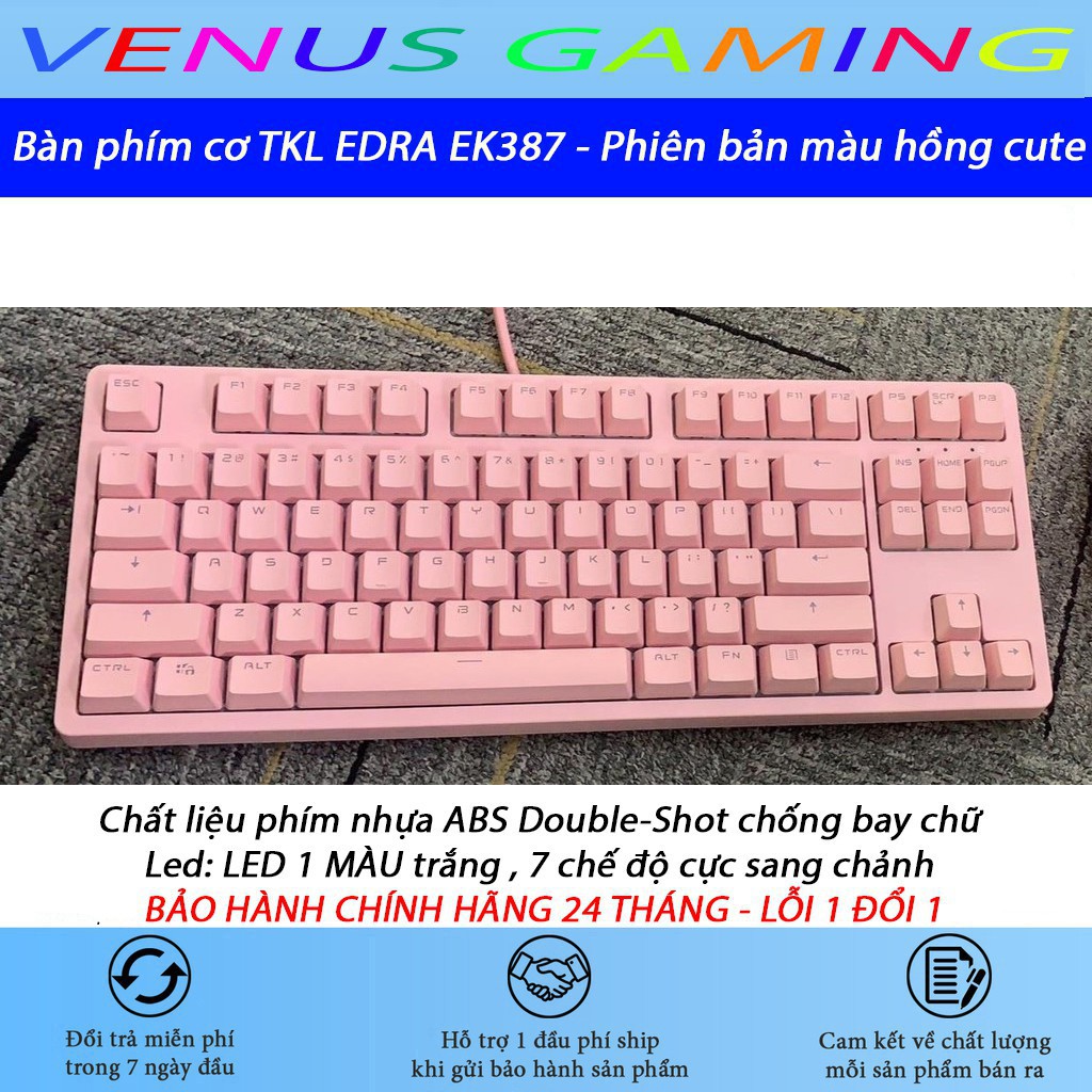 Máy tính & Laptop > Chuột & Bàn Phím > Bàn Phím Máy Tính || Bàn phím cơ TKL EDRA EK387 HUANO SWITCH 2021 - Phiên bản màu hồng cực kute - Blue/ Red/ Brown Switch - Bảo hành 24 thánCòn hàng