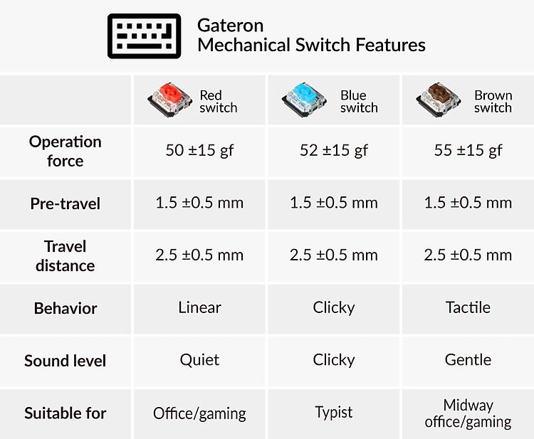 So với các bàn phím cơ học khác, nó cần ít lực hơn và sử dụng ít di chuyển ngón tay hơn, giúp giảm mỏi ngón tay và mang lại cảm giác thoải mái khi đánh máy chưa từng có.