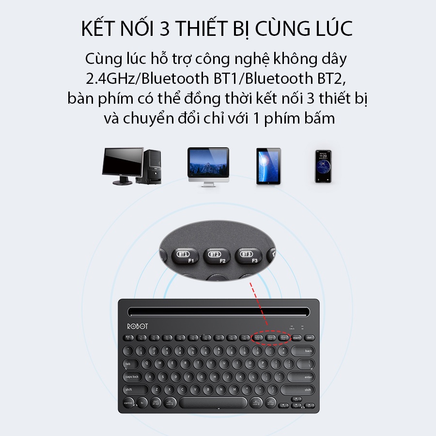 BÀN PHÍM ĐA NĂNG ROBOT KB10 - HAI CHẾ ĐỘ KẾT NỐI KHÔNG DÂY 2.4 GHZ VÀ BLUETOOTH - THIẾT KẾ NHỎ GỌN CÓ KHE GIÁ ĐỠ ĐIỆN THOẠI - BẢO HÀNH 12 THÁNGSản phẩm chính hãng ROBOT