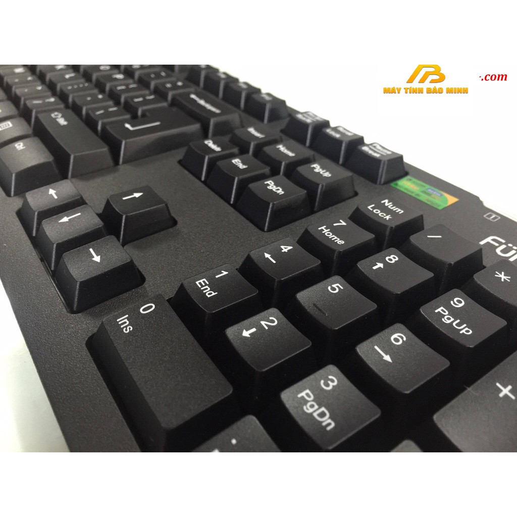 - Bàn phím FUHLEN L411 có kích thước trung bình gồm 104 phím. Mặt trước của bàn phím được gia công từ chất liệu nhựa nhám đem lại cảm giác sờ rất mịn ở đầu ngón tay. Các phím có độ sâu khoảng 1.6mm đạt chuẩn không bị quá nông hoặc quá cao giúp người dùng lướt nhanh khi đánh văn bản. Phím Spacebar được cách tân to hơn với đường cong hòa quyện tạo phong thái mỏng manh cho cả bàn phím.