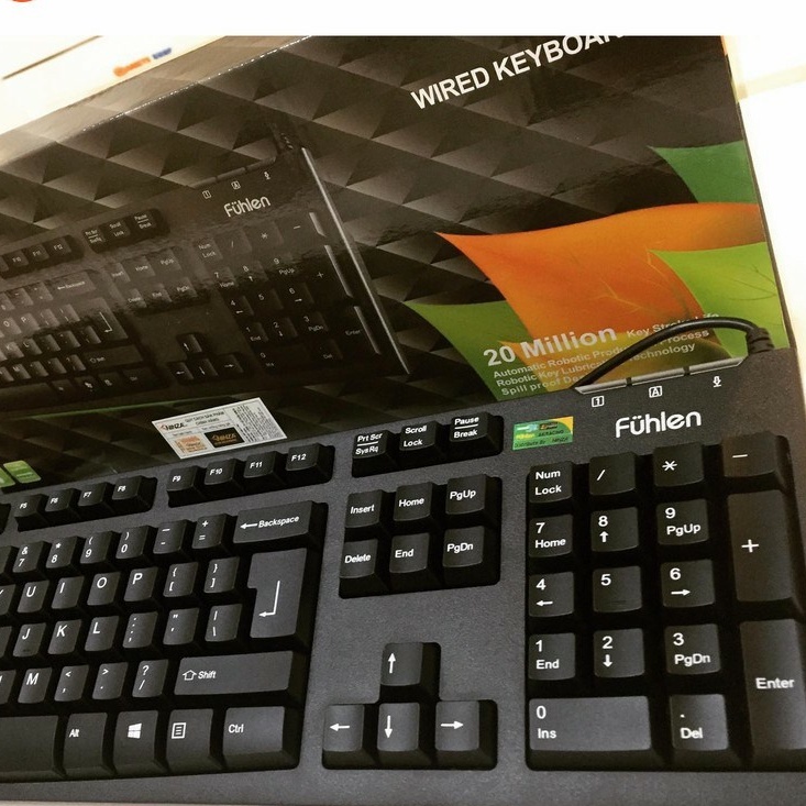 Nguyên hộp bàn phím Fulhen L411 hàng chính hãng bảo hành 24 thángBàn phím Fuhlen L411: chuyên dùng cho quán Net, các phím nổi, chống ồn. Dây dài chuẩn 1,6m, Phím khắc Laser giúp không bị mờ.
