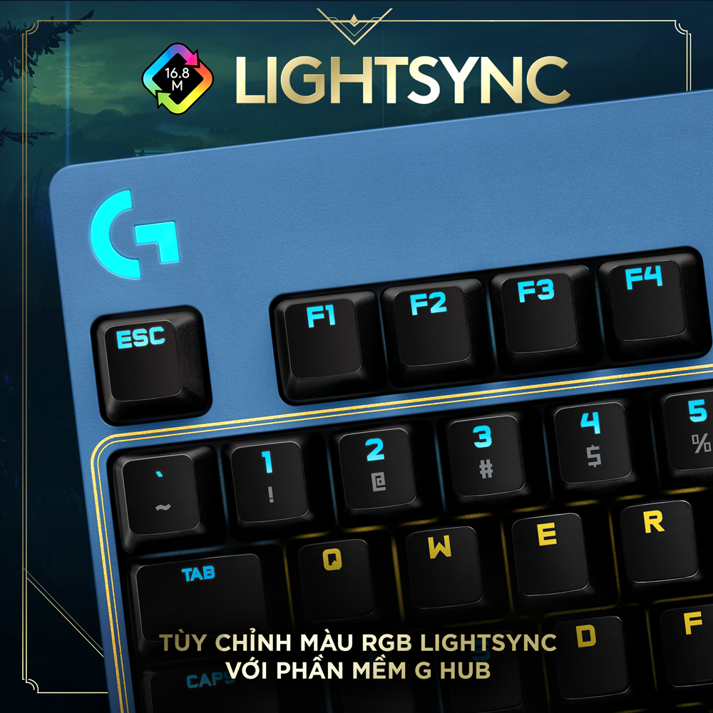 Bàn phím game cơ học Logitech Pro LOL League of Legends - Không phím số, nhỏ gọn, RGB, switch cơ tactilePHÍM SWITCH GX TACTILECác phím switch cơ học GX Tactile tiên tiến được chế tạo để tăng hiệu suất...- Giao hàng toàn quốc