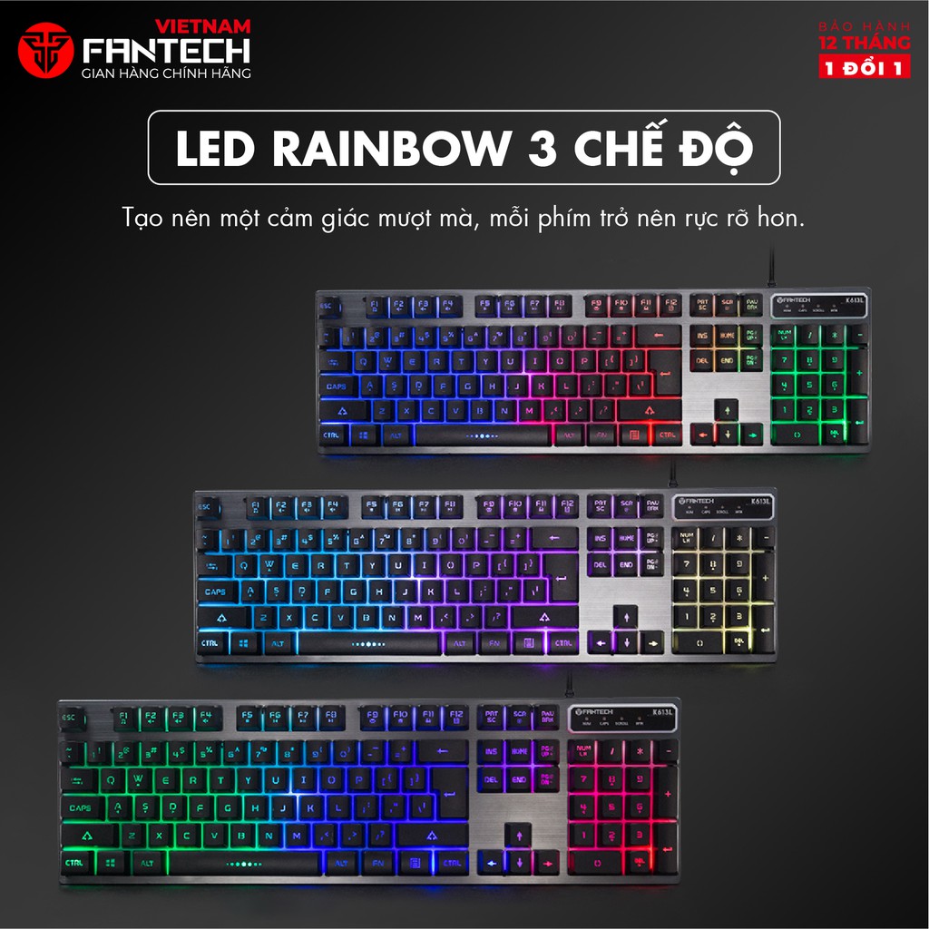 Bàn Phím Gaming Có Dây Full-sized Fantech K613L FIGHTER II Backlit LED 19 Phím Anti Ghost - Hãng Phân Phối Chính Thức