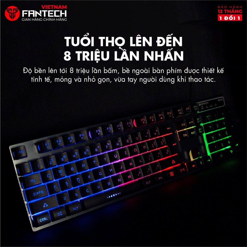 - Tính năng Anti Ghosting đặc biệt này của dòng bàn phím gaming Fantech mang đến trải nghiệm tốt nhất, với khả năng sử dụng đồng thời 25 phím, đảm bảo mọi thông tin nhập vào không bị bỏ sót và yên tâm chiến đấu mà không sợ bị nhấn nhầm hoặc bất ngờ.