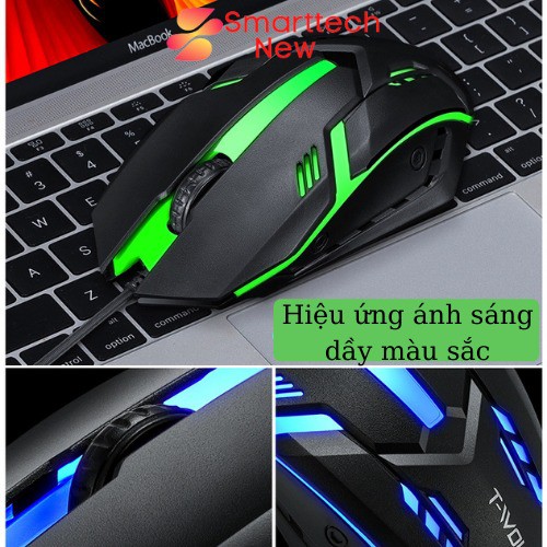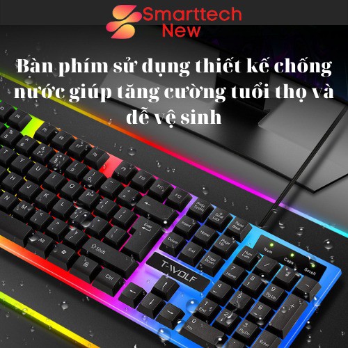 Bộ Bàn Phím Gaming Có Dây Kèm Chuột Máy Tính Gaming T-WOLF - Bàn Phím Giả Cơ Có Đèn LED 7 Màu Ấn Tượng