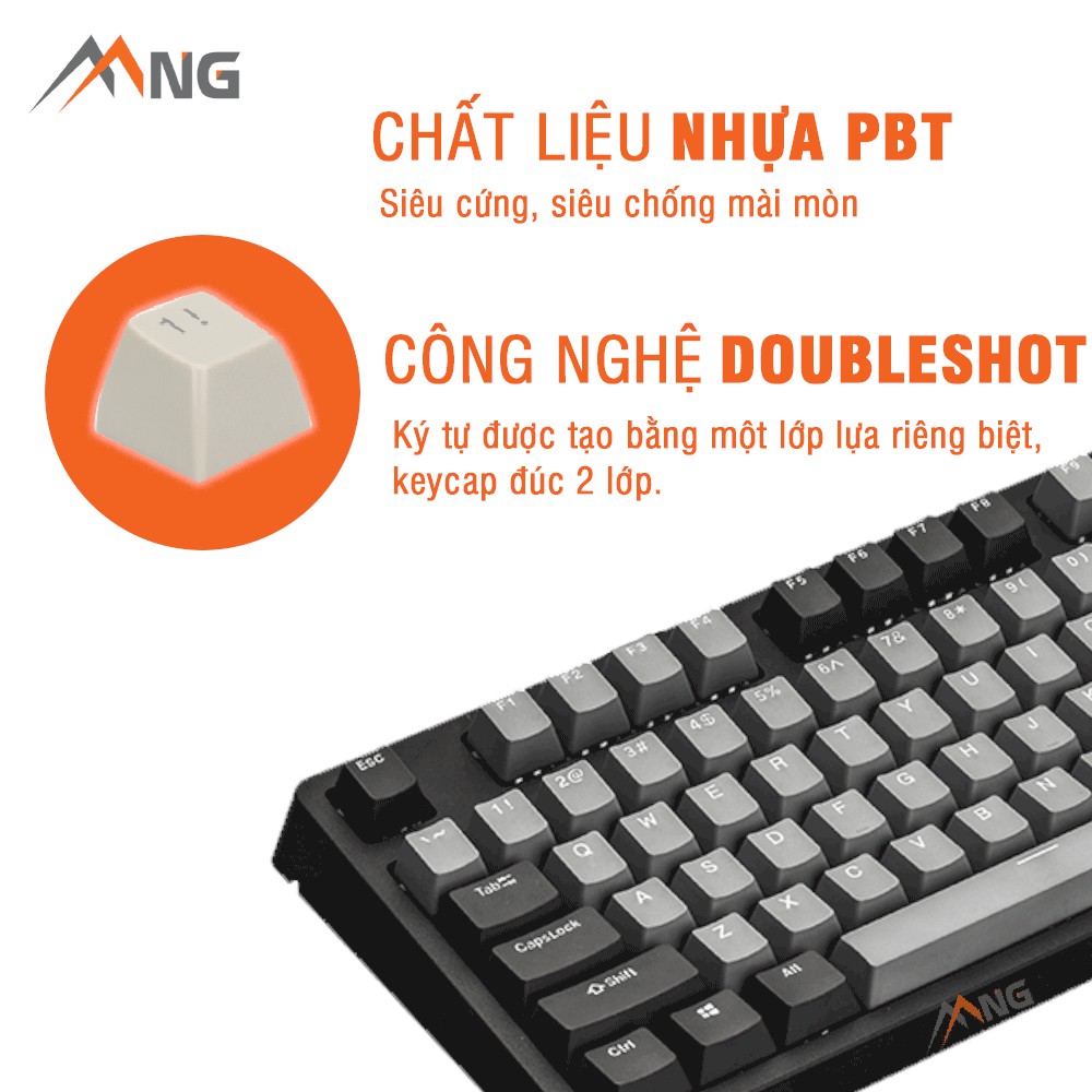 - Công nghệ tạo ký tự DoubleShot (keycap đúc 2 lớp, ký tự được tạo bằng một lớp lựa riêng biệt) giúp cho độ bền của ký tự trên keycap là vĩnh viễn, không thể bị mờ.