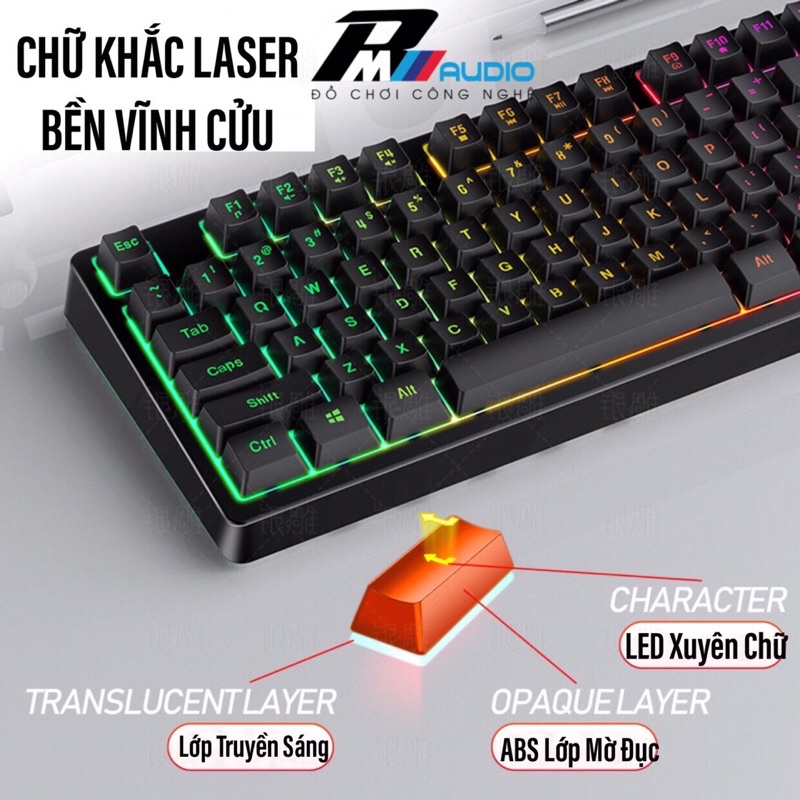 Bàn Phím Gaming K200 YINOIAO Led xuyên chữ có 4 màu HỒNG, XANH ,TRẮNG, ĐEN.Bảo hành lỗi 1 đổi 1-BMVAUDIO