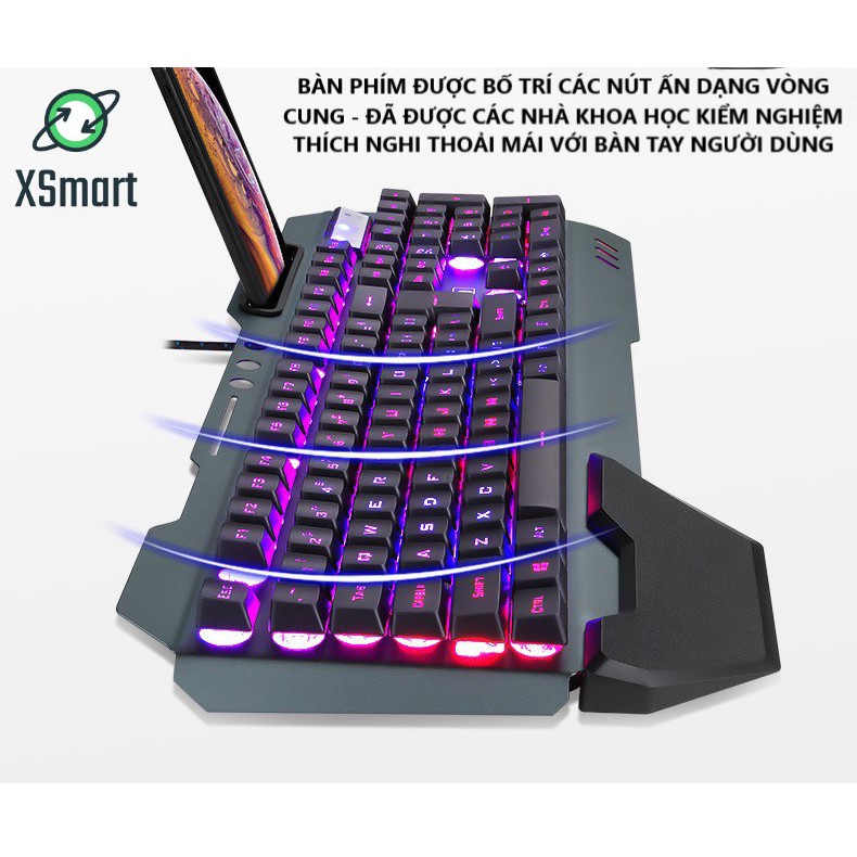 Bàn Phím Gaming K618 Super Pro New 2022 Led Đổi Màu 10 Chế Độ Led Khác Nhau Ngang Phím Cơ PC - XSMART
