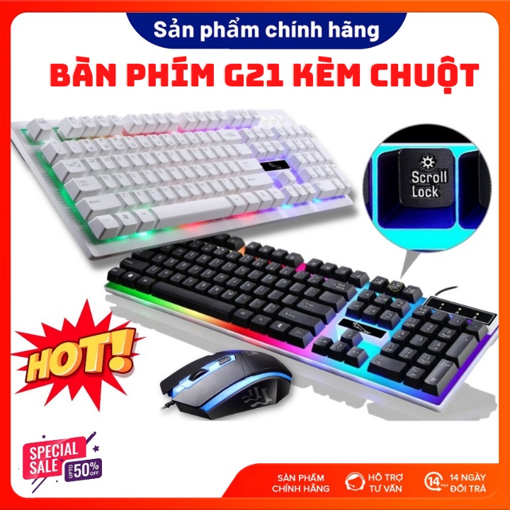 Bàn Phím Gaming Kèm Chuột Có Đèn Led 7 Màu G21, Phím Giả Cơ Led Siêu Đẹp Chuyên Chơi Game, Văn Phòng Cho PC Và Laptop