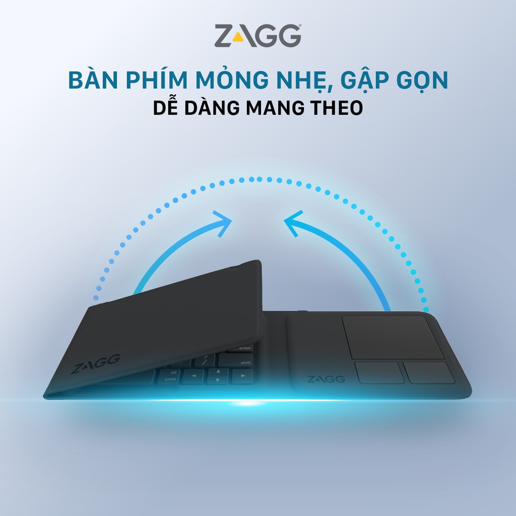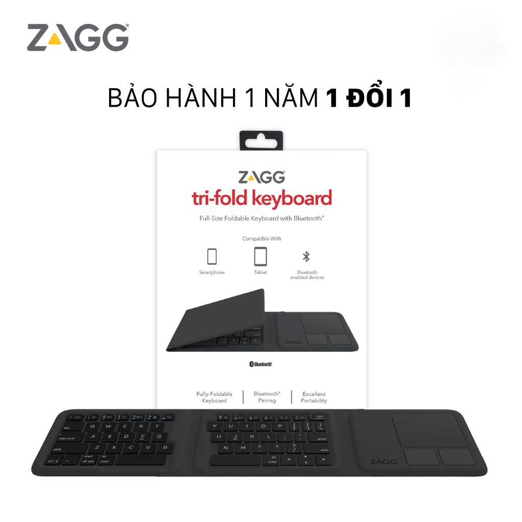 Bàn phím gập đa năng với bàn di chuột ZAGG Trifold [CHÍNH HÃNG PHÂN PHỐI VN, BẢO HÀNH 1 NĂM]