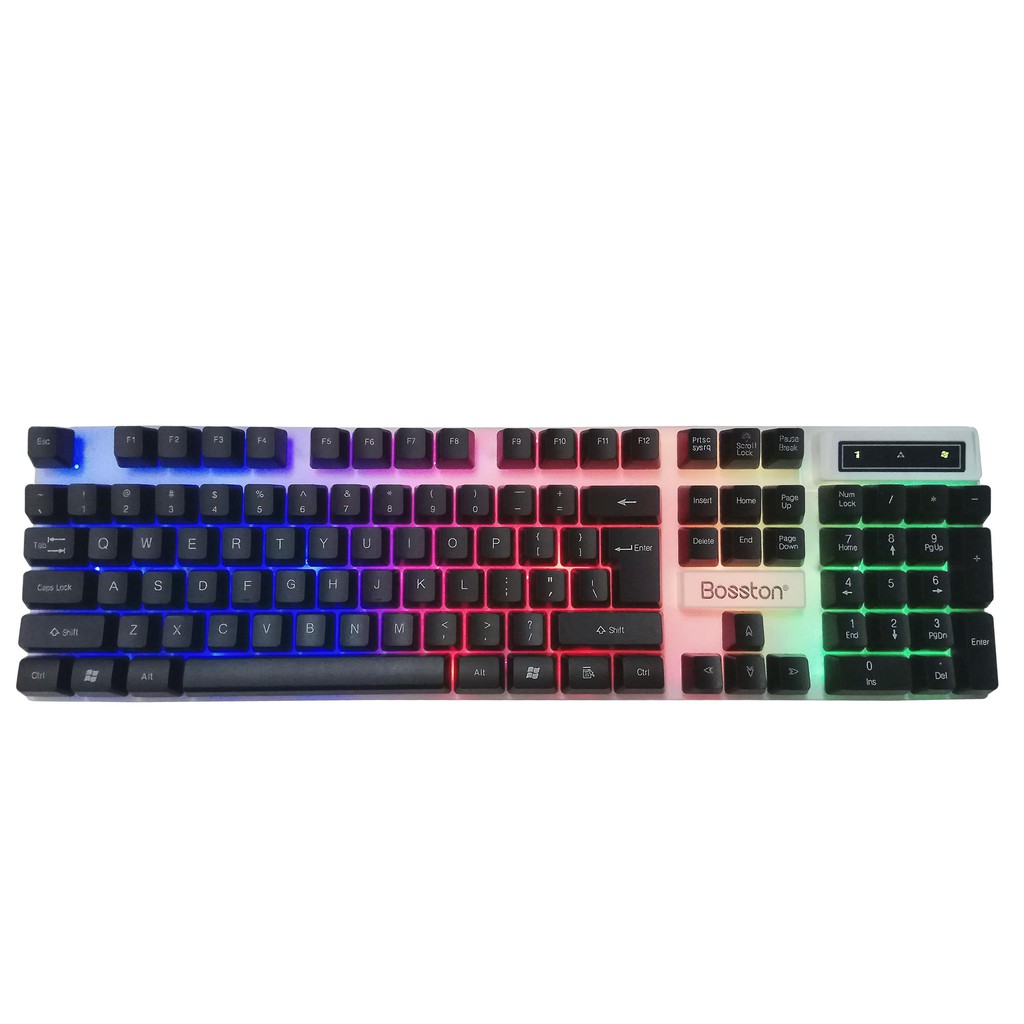 - Bàn phím led chuyên game giả cơ Bosston 808 với thiết kế tựa như 1 bàn phím cơ với đường nét và kiểu dáng rất phá cách, hệ thống đèn led dưới nền cực kỳ ấn tượng với 3 gam màu Xanh - Đỏ - Tím. Có thể tắt mở tùy ý bằng phím Scroll Lock. Giúp người dùng, đặc biệt là các game thủ có thể thoải mái sử dụng vào ban đêm.
