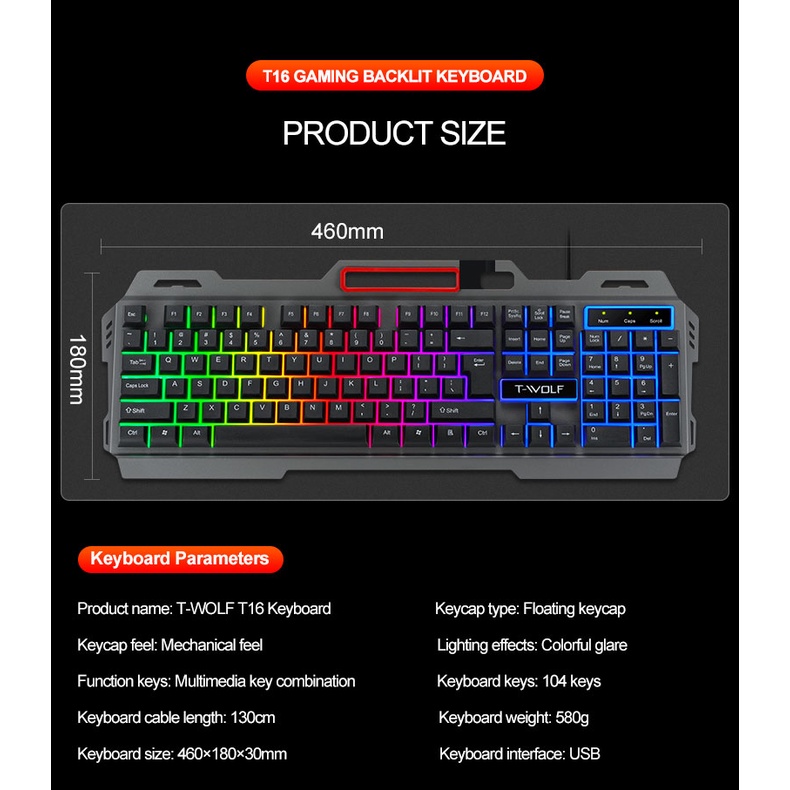 Thương hiệu: T-WOLF | Xem thêm các sản phẩm Phụ kiện phím chuột văn phòng của T-WOLFMô tả ngắn