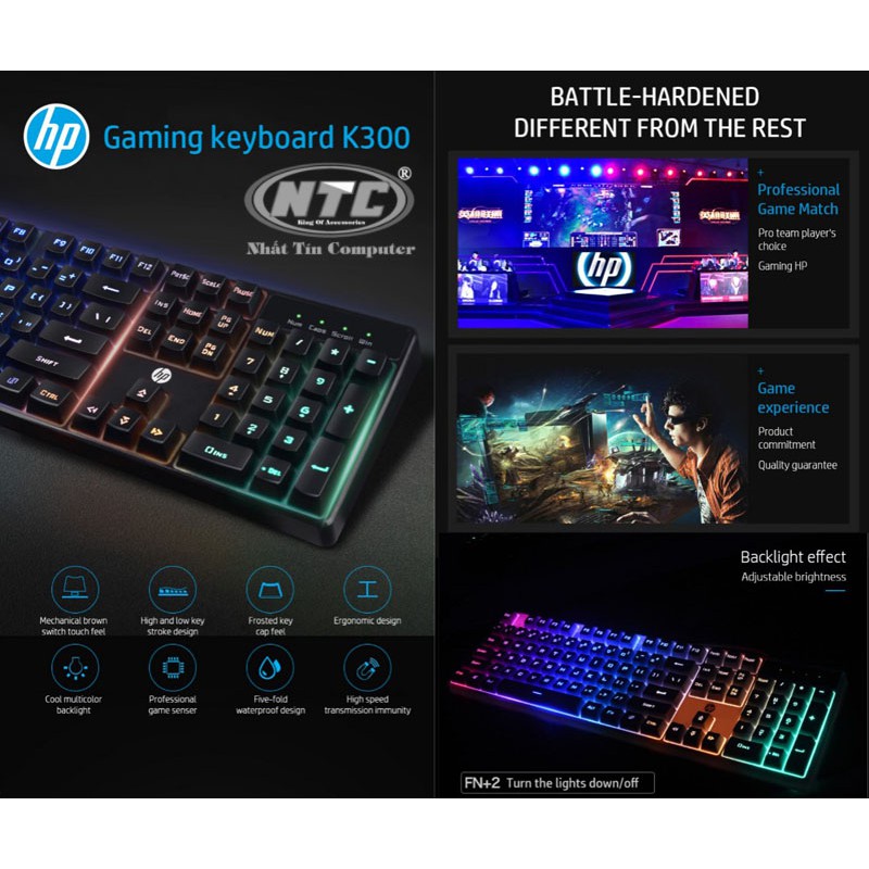 Máy tính & Laptop > Chuột & Bàn Phím > Bàn Phím Máy Tính || [Mã 253ELSALE hoàn 7% đơn 300K] Bàn phím giả cơ HP K300 led đa màu-phím cao chống nước, bấm cực êmCòn hàng