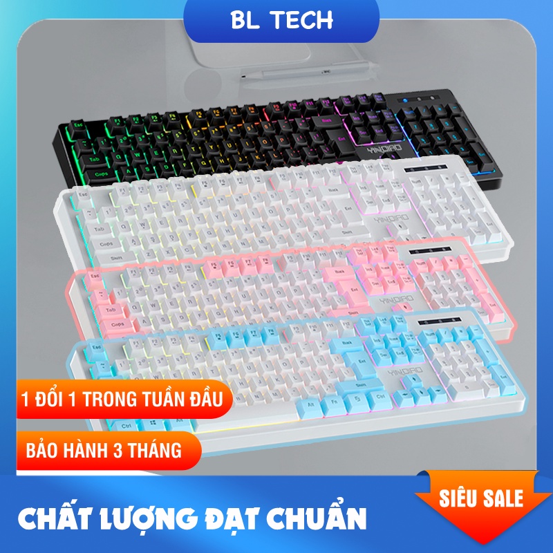 Bàn phím giả cơ K200 cực nhạy đèn LED sáng nhiều màu hồng xanh đen phù hợp cho giải trí văn phòng bao chất