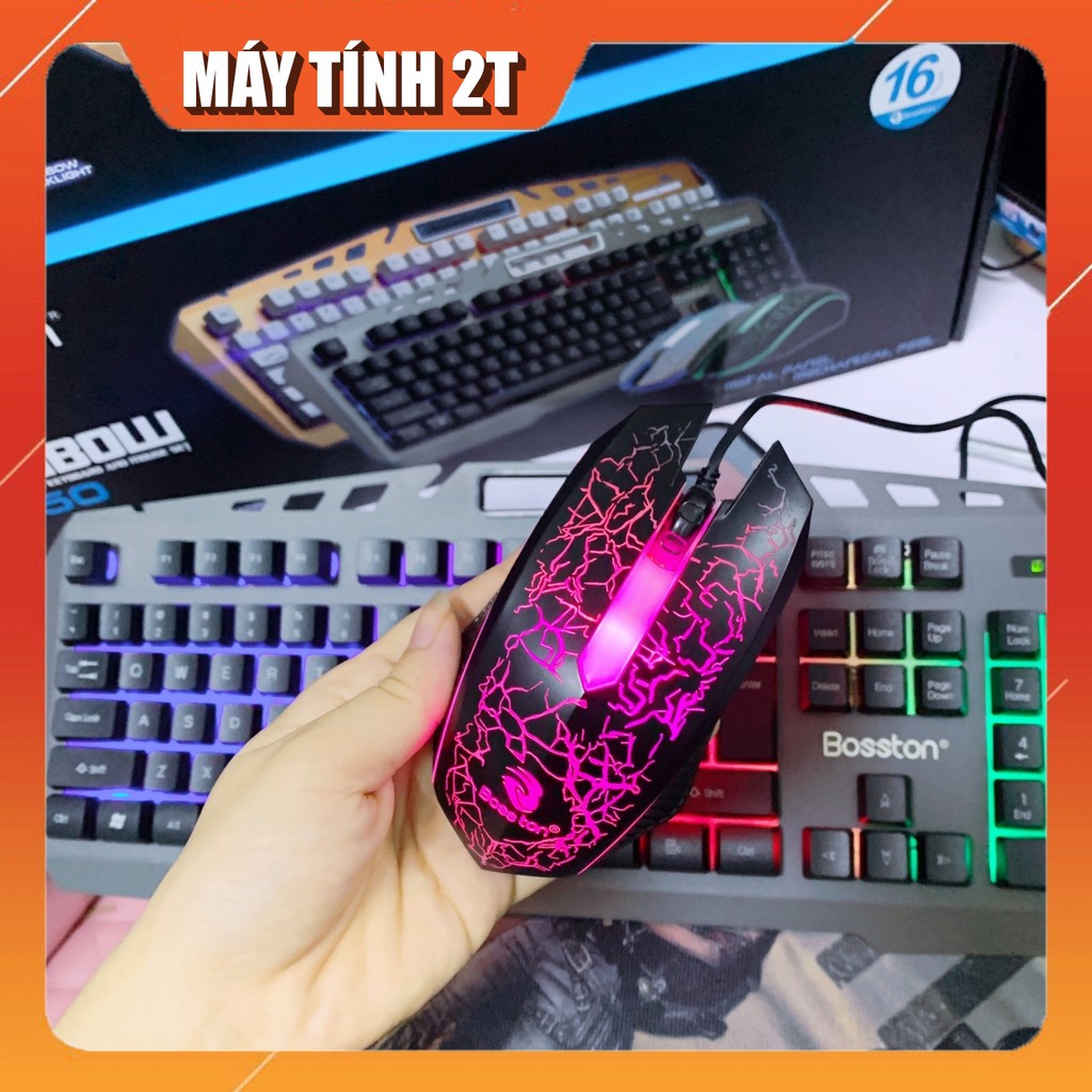 Bàn phím giả cơ và chuột gaming Bosston 8350 phím cao chống nước, đèn led bắt mắt - Tặng kèm bàn di 20x25 - Máy Tính 2T