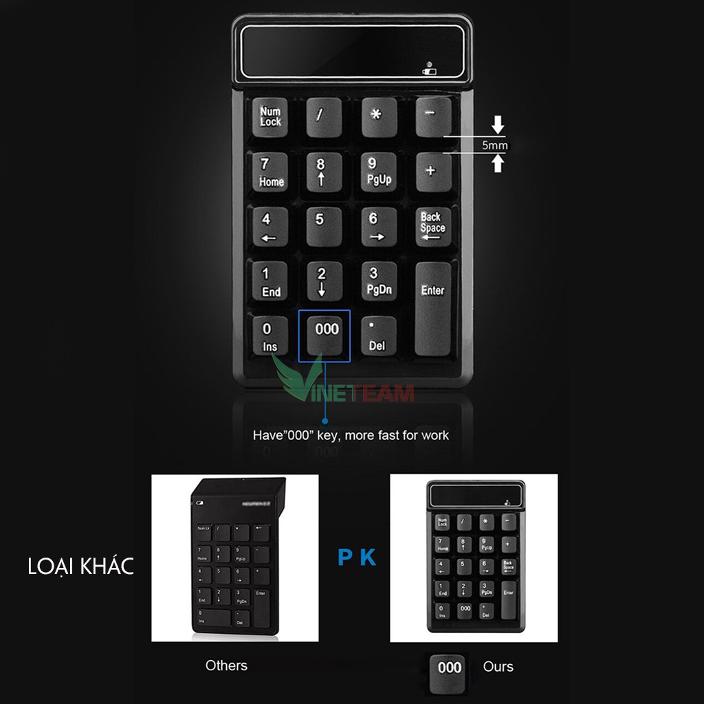 Thân thiện với người dùng: Bàn phím số 19 phím, bao gồm cả phím "000" mạnh mẽ, cải thiện đáng kể hiệu quả công việc. Khoảng cách khoảng 5mm giữa các keycaps giúp tránh lỗi đánh máy một cách hiệu quả.