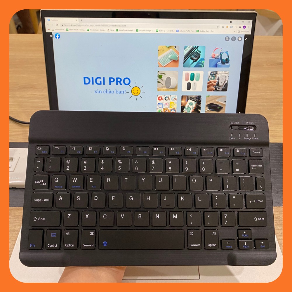 - Bàn phím Không Dây Bluetooth thiết kế siêu mỏng, siêu nhỏ gọn dễ dàng mang theo khi ra ngoài.