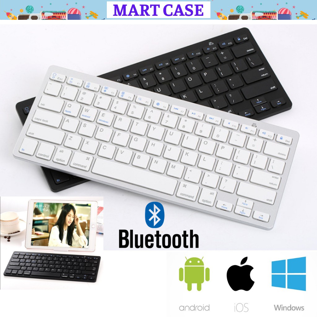 Giới thiệu Bàn phím không dây Bàn phím bluetooth mỏng đẹp phím ấn nhẹ dùng cho Điện thoại - Máy tính bảng - Laptop MART CASE