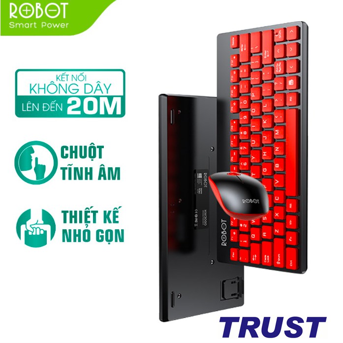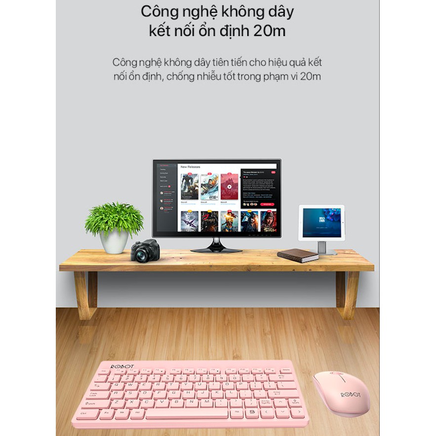 Bộ Bàn Phím Không Dây & Chuột Không Dây 2.4GHz ROBOT KM3000 Kiểu Dáng Nhỏ Gọn Kết Nối Không Dây 20m 16000DPIThương Hiệu Robot