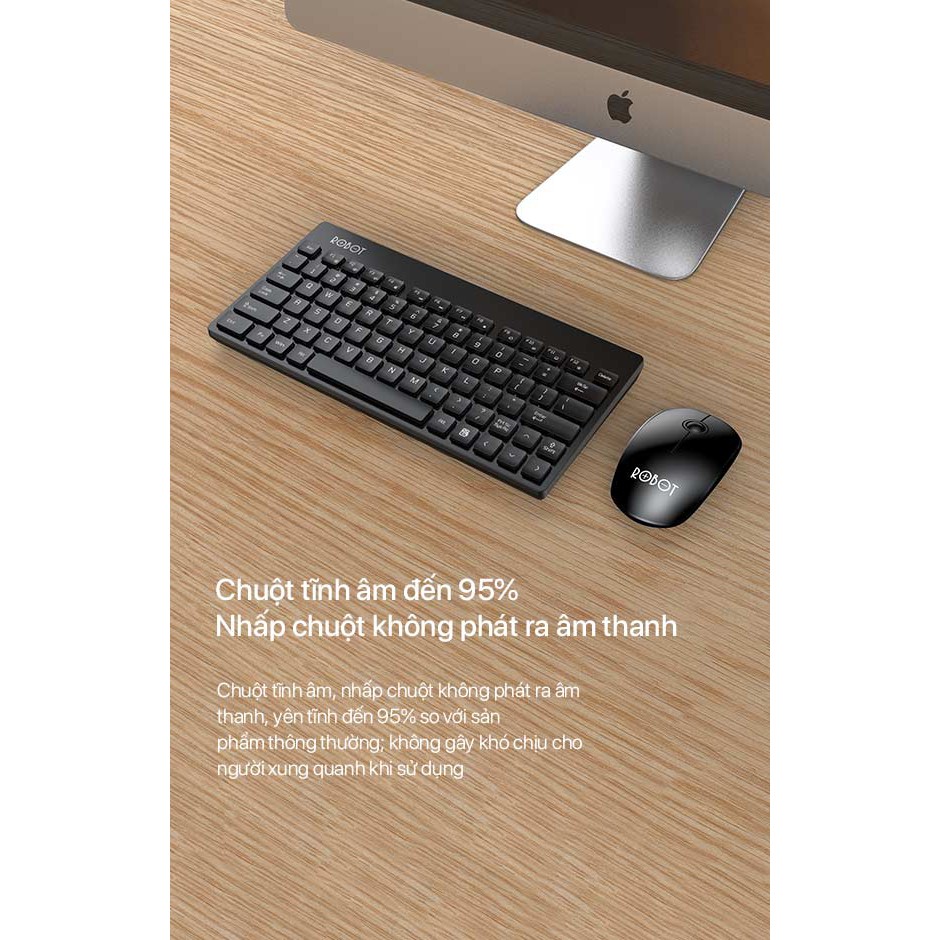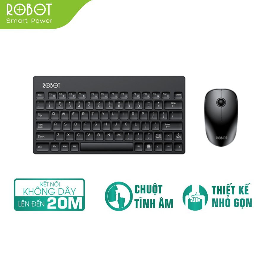 Bộ Bàn Phím Không Dây & Chuột Không Dây 2.4GHz ROBOT KM3000 Kiểu Dáng Nhỏ Gọn Kết Nối Không Dây 20m 16000DPIThương Hiệu Robot