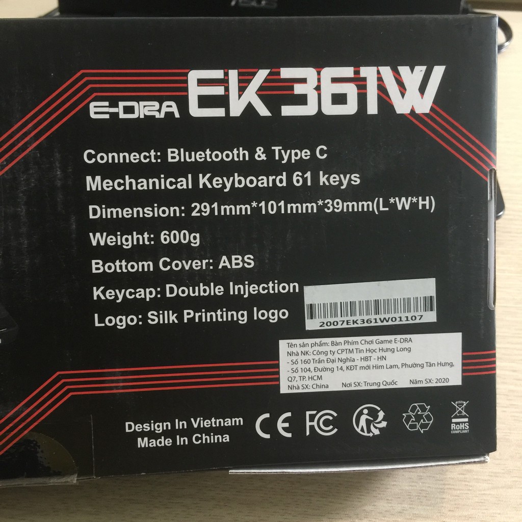 Giới thiệu Bàn phím không dây Edra EK361W cơ, pin lithium polymer, switch Outemu, 64 phím, chơi game, màu đen, trắng