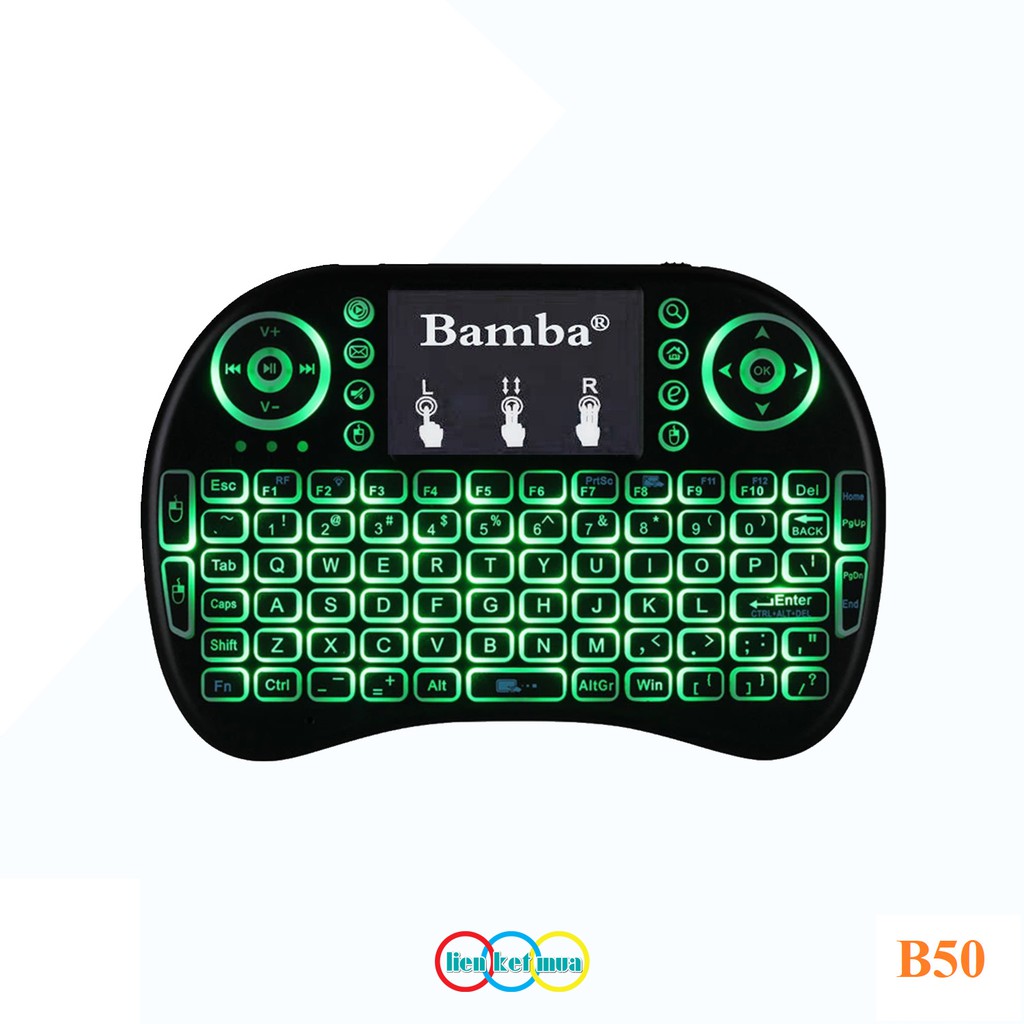 Bàn Phím Không Dây Mini Bamba B50 Có Đèn Led Dùng Cho Android TV Box, Smart TV, Laptop