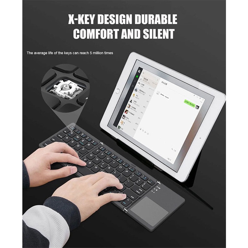 Bàn Phím Không Dây Mini Gấp Gọn Bluetooth Tích Hợp Touchpad, Bàn Phím Bluetooth gấp 3 lần nhỏ gọn tiện dụng