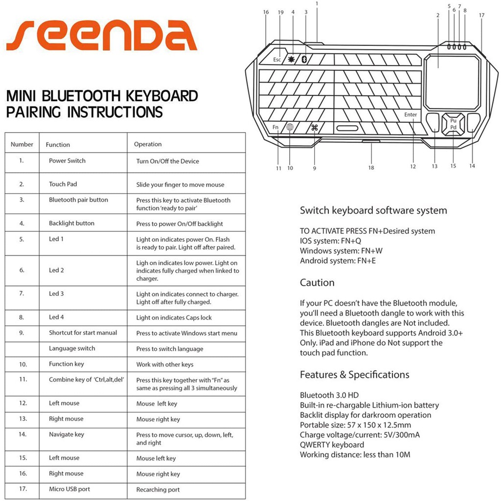 Bộ bàn phím Bluetooth mini SEENDA IS11-BT05 là một trong những chiếc bàn phím Bluetooth Touchpad phổ biến nhất trên thế giới. Nhờ vào thiết kế bàn phím QWERTY và Touchad hỗ trợ sử dụng như chuột máy tính nên việc ứng dụng cho các thiết bị như điện thoại, ipad, máy tính, máy chiếu và smart TV rât tiện lợi.