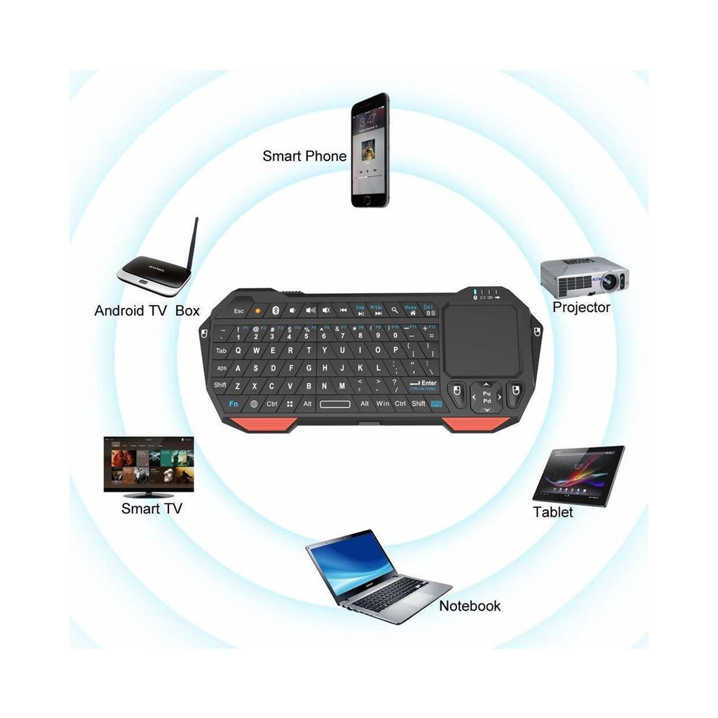 Bàn phím tương thích với các sản phẩm như: Smart Projector, Apple TV, Amazon Fire Stick, Google TV, Xbox 360, PlayStation 4, HTPC / IPTV VR Glasses (Virtual Reality), Smartphone (iOS/Android/Windows), Notebook, Laptop (chỉ hỗ trợ Android 4.0, Amazon FireTV & Samsung Smart TV & iPad và iPhone không hỗ trợ Touchpad).